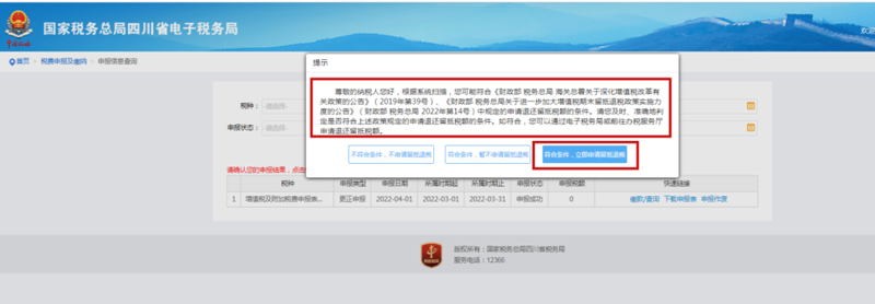 1)申报进入,完成一般纳税人增值税申报表后,如符合留抵退税条件,系统自动弹出退税提醒: