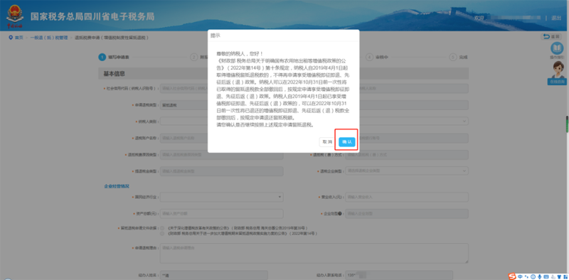 1)进入退税申请界面后,阅读并确认提醒
