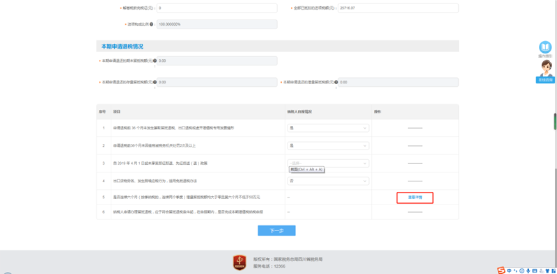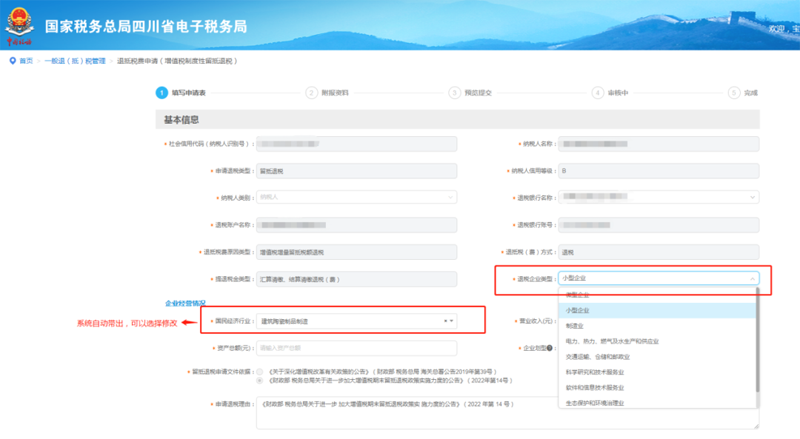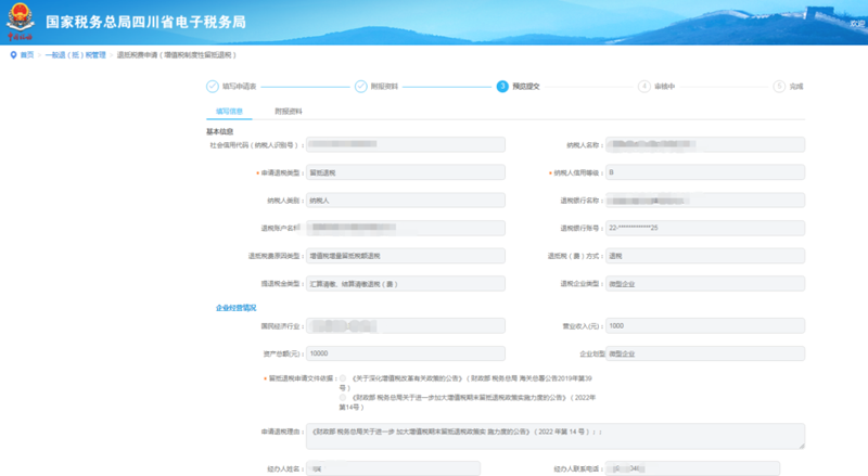 2. 填写退税申请信息