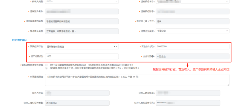 系统需要根据填写的国民经济行业、营业收入、资产总额判断纳税人企业划型:“小、微、中、大型企业”