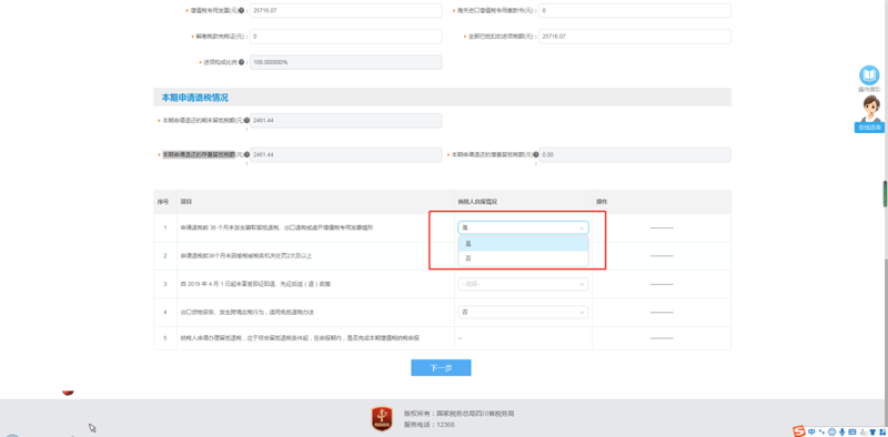纳税人自行下拉选择是否符合留抵退税其他相关条件