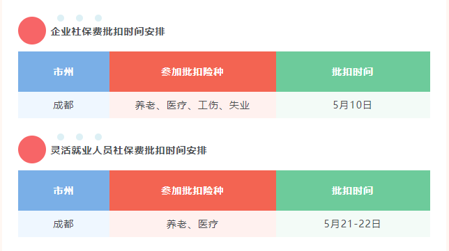 2023年5月成都市社保费批扣时间安排已出,请查收!