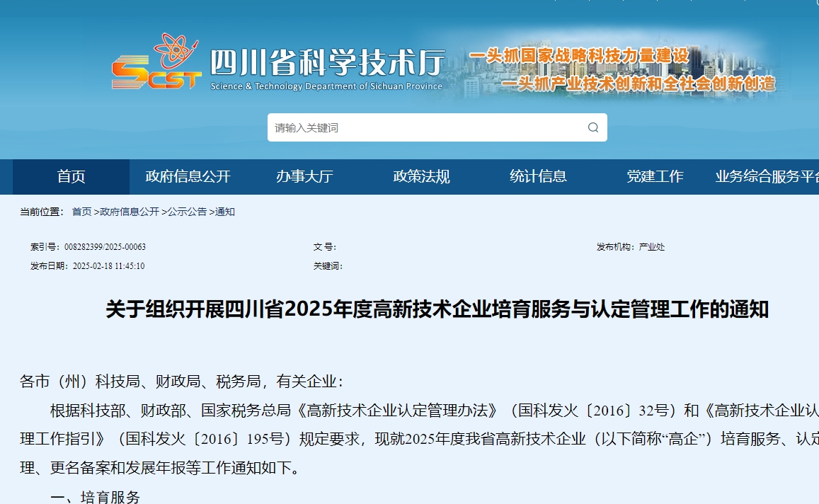 四川省2025年度高新技术企业申报时间